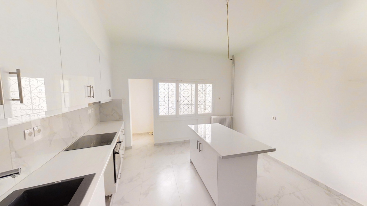 The apartment consists of a living room, 2 bedrooms, a kitchen, a small storage space, a large bathroom and a WC. The unobstructed views of the Acropolis and the 11th century holy temple of Metamorphosis, make it unique.